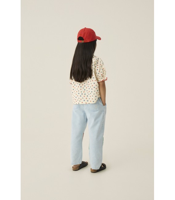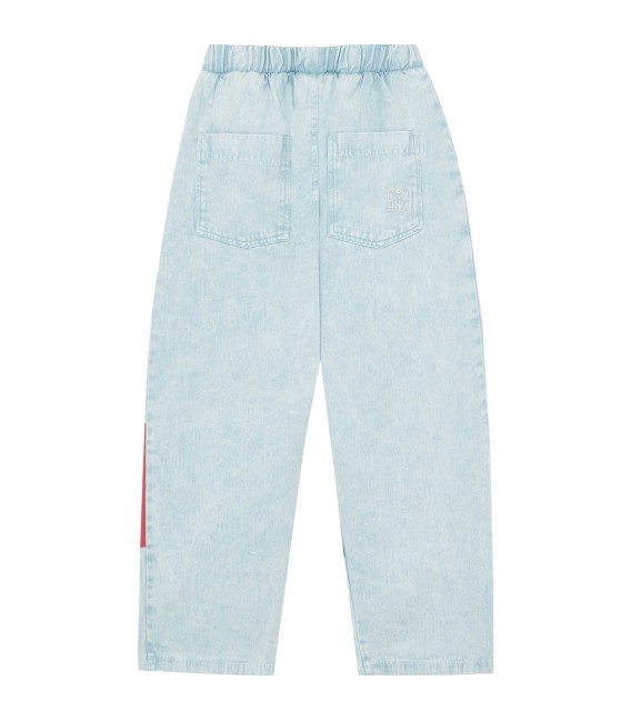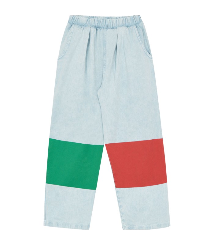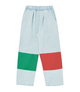 Trousers in cotton woven quality with a heavy wash that make each garment unique and special. With a touch of color in the patch of the knees, it is the perfect garment to complete the summer wardrobe.